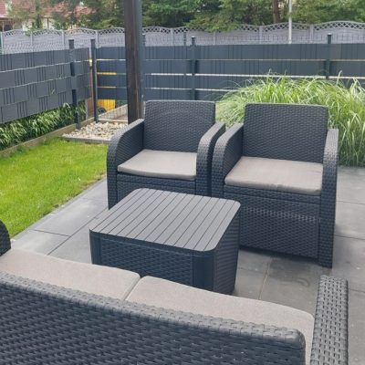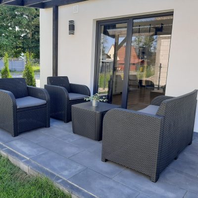 Zadaszony taras z meblami wypoczynkowymi